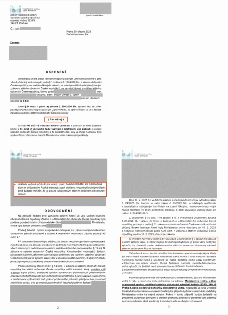 Ministerstvo vnitra České republiky chce zmrazit občanství nejen Rusům. Nyní ministerstvo vnitra vyžaduje od některých kategorií žadatelů o občanství České republiky potvrzení o tom, že nemají občanství Ruské federace.