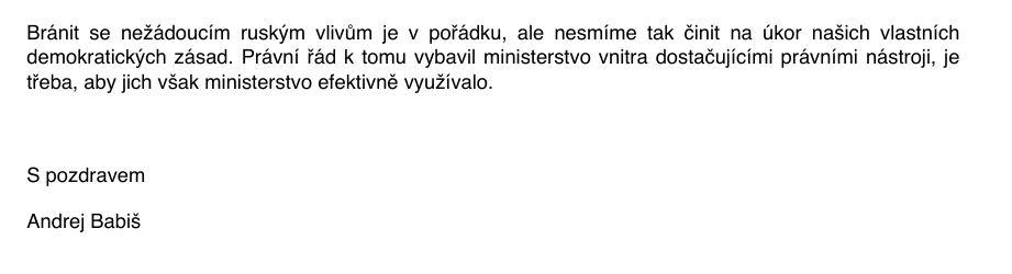Odpověď Andreje Babiše na odvolání aktivistů:
